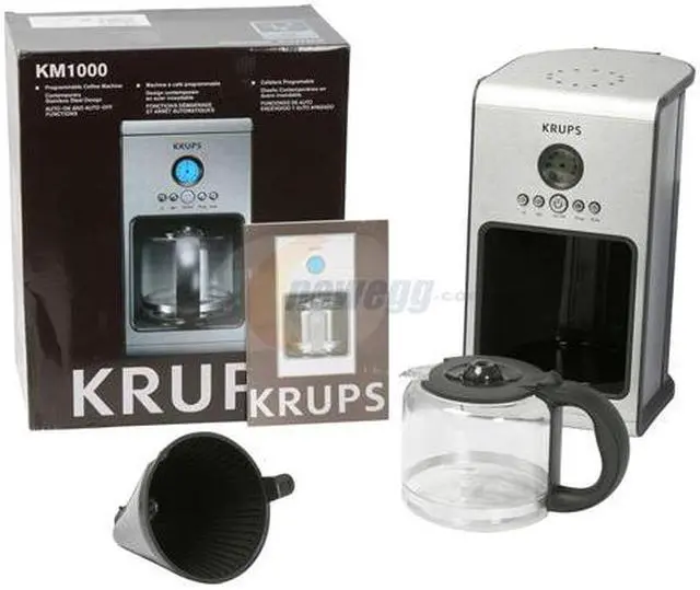 | Features | Full stainless steel body with graphite accents Translucent water tank with dual water level windows Illuminated blue LCD analog style clock Intuitive easy to use programming Removable filter basket for easy cleaning Pause and serve feature Sturdy 10-cup glass carafe |
