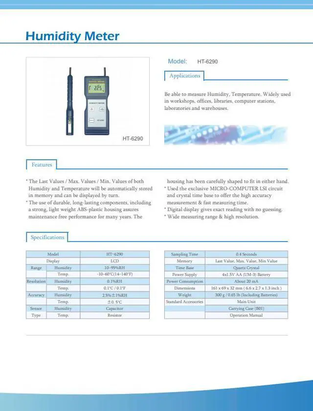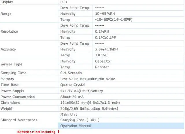 * The Last Values / Max. Values / Min. Values of both Humidity and Temperature will be automatically stored in memory and can be displayed by turn.