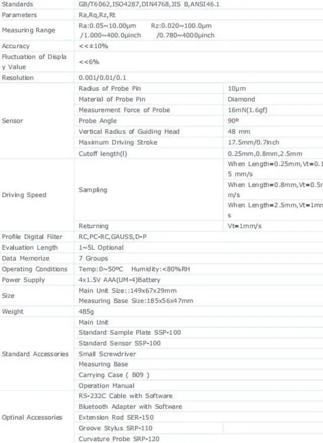 Spec:Widely used in production site to measure surface roughness of various machinery-processed parts.