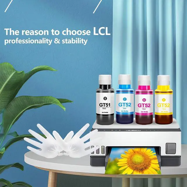 LCL GT51 GT52 ink is dye ink which have a low diffusion coefficient, resulting in a layered and brightly colored print. In addition, its surface tension properties make it easy for the ink to be absorbed by the surface of the paper, so that the print remains glossy, dye ink is a complete composite solution, not easy to clog the print head.