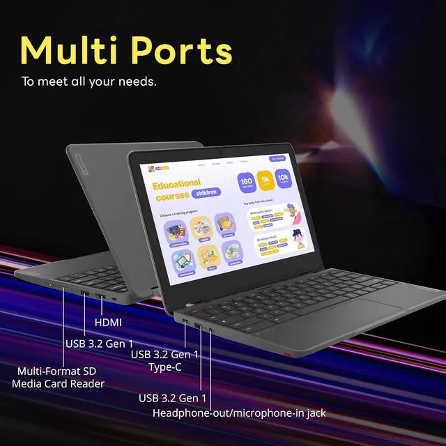 • MediaTek MT8186 ProcessorThe low voltage design optimizes energy usage, allowing you to stay productive and entertained with great efficiency.