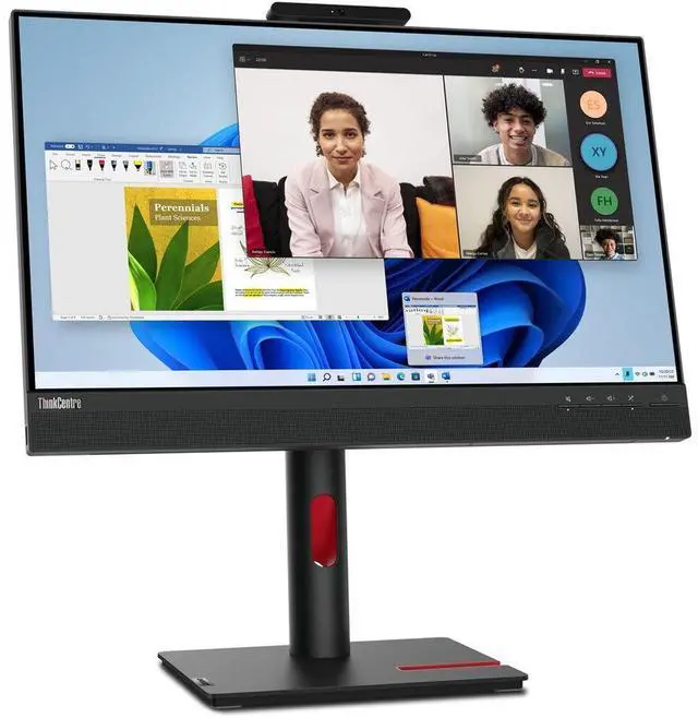 The ThinkCentre Tiny-In-One (TIO) 24 Gen 5 Touch displays visuals and video content with great clarity on the 23.8 -inch borderless In-Plane Switching FHD panel with 99% sRGB color support. It provides a complete working experience when paired with its VoIP features, a modular design that allows it to be attached to Lenovo's range of high-performance ThinkCentre and ThinkStation Tiny Computers from 4th Gen. These can be effortlessly installed and housed in the dedicated slot at the back of the monitor, giving you a cable-free desk. Enjoy a consistent experience while using the classic installation mechanism to quickly and easily mount Tiny PCs to the monitor.