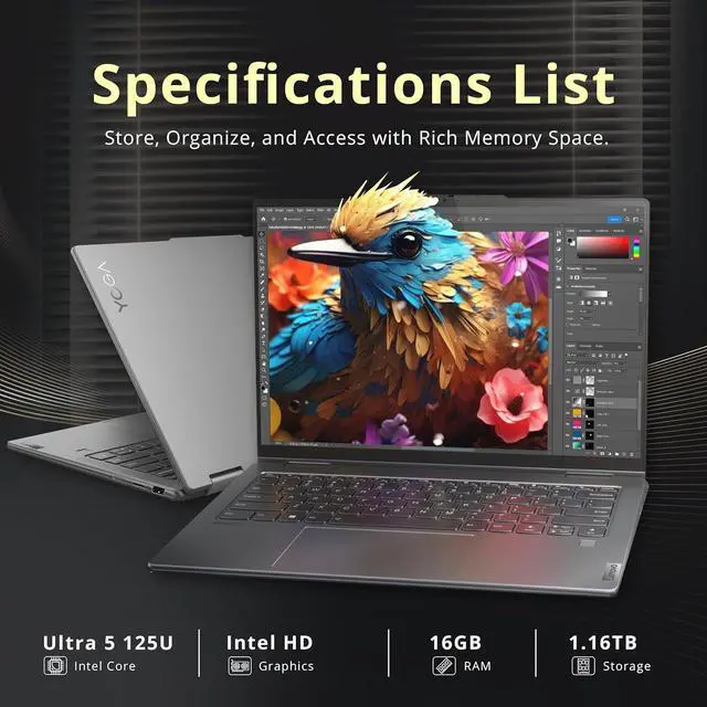 14" 2K Touchscreen Display14" WUXGA (1920 x 1200) IPS touchscreen display. Embark on a visual journey where vibrant colors and high resolution come to life at your fingertips.