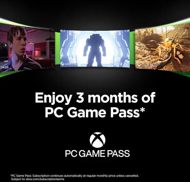 3 MONTHS PC GAME PASS Play hundreds of high-quality PC games with your new Lenovo LOQ device and 3 months of PC Game Pass, including EA Play. With new games added all the time, theres always something new to play.