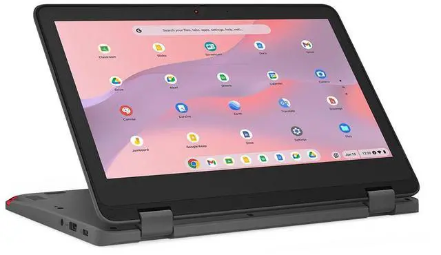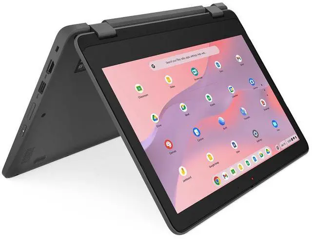 Whether students need to access the internet or plug in headphones or a battery pack, the Lenovo 300e Yoga Chromebook is more than ready. It has a number of ports, including a full-function USB-C port, perfect for charging, transferring files, and more. It also comes with a suite of free productivity tools via Google Workspace for Education Fundamentals, easy-to-use tools that offer a flexible and secure foundation for learning, collaboration, and communication.
