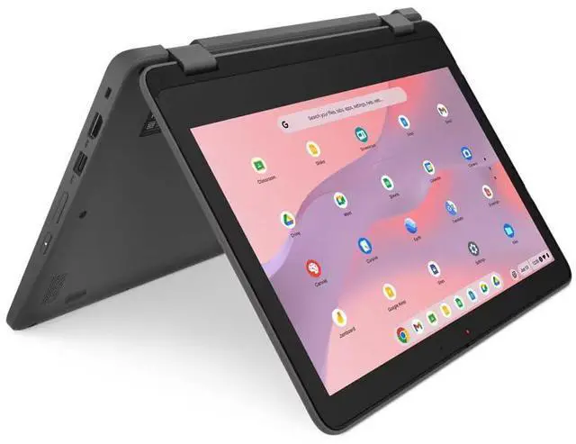 The device also boasts a long battery life, ensuring productivity throughout the day and into the night. Equipped with a variety of ports, including a full-function USB-C port, the Lenovo 300e Yoga Chromebook is ready for all your connectivity needs. Whether you need to charge your device, transfer files, or plug in peripherals, this device has you covered. It also comes with a suite of free productivity tools via Google Workspace for Education Fundamentals, offering a flexible and secure foundation for learning, collaboration, and communication. Experience the practical yet empowering features of the Lenovo 300e Yoga Chromebook Gen 4 11.6" HD 2-In-1 Touchscreen Laptop.