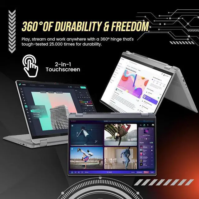 UpgradedSeal is opened for upgrade only. 16" WUXGA IPS Touchscreen16" WUXGA (1920 x 1200) display that offers crisp visuals and minimizes reflections with its anti-glare technology. 2-in-1 Design Convert to a tablet with the flip of a screen around a 360° hinge.