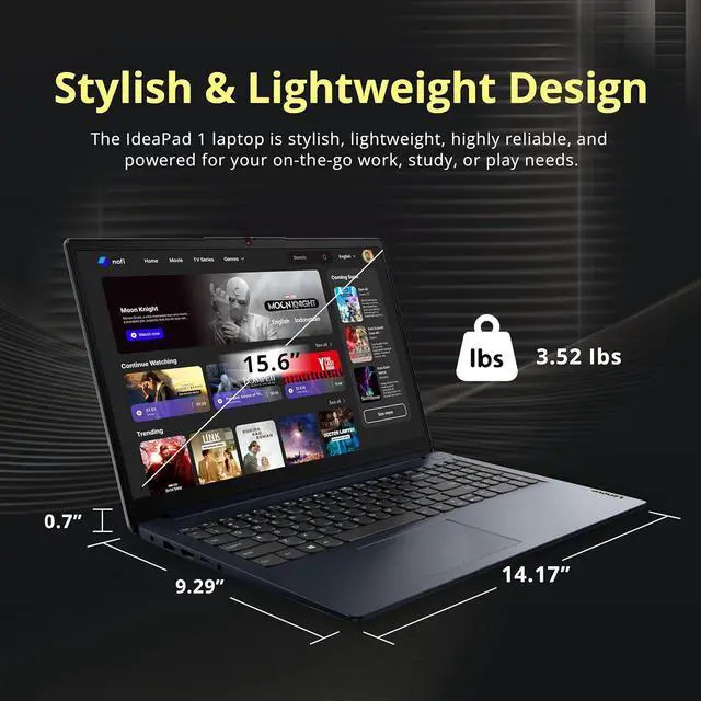 Windows 11 Home: 14.17" x 9.29" x 0.7", 3.52 lbs. Ports: 1x USB-A 2.0, 1x USB-A 3.2, 1x USB-C, 1x Media Card Reader, 1x HDMI, 1x Audio Combo Jack. Bluetooth 5.2+WiFi 6. Bonus Docking Station Set: 1x 7-in-1 Docking Station w/ 1TB Storage, 1x 32GB MicroSD Card w/ Adapter, 1x Type-C Data Cable, 1x 3-in-1 Charging Cable, 1x Suede Cleaning Cloth.