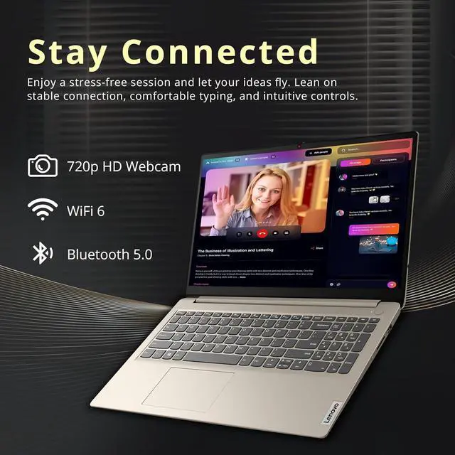 15.6" HD Display: Delivers clear visuals and comfortable brightness for everyday work, streaming, and casual use.