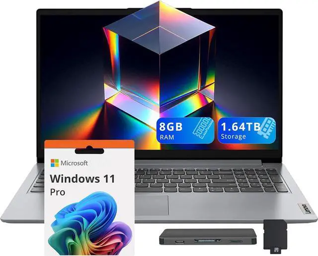 Windows 11 Pro: 14.17" x 9.29" x 0.7", 3.42 lbs. Ports: 1x USB-A 2.0, 1x USB-A 3.2, 1x USB-C, 1x Media Card Reader, 1x HDMI, 1x Audio Combo Jack. Bluetooth 5.2 + WiFi 6. Bonus Docking Station Set: 1x 7-in-1 Docking Station w/ 1TB Storage, 1x 32GB MicroSD Card w/ Adapter, 1x Type-C Data Cable, 1x 3-in-1 Charging Cable, 1x Suede Cleaning Cloth.