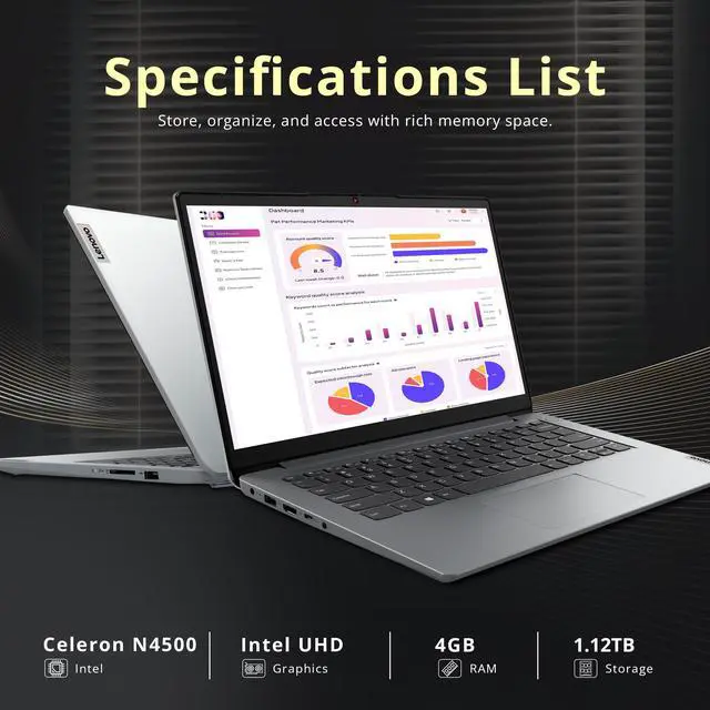 Intel Celeron N4500 Processor: Low-voltage design ensures efficient energy use, smooth multitasking, and seamless browsing and streaming.