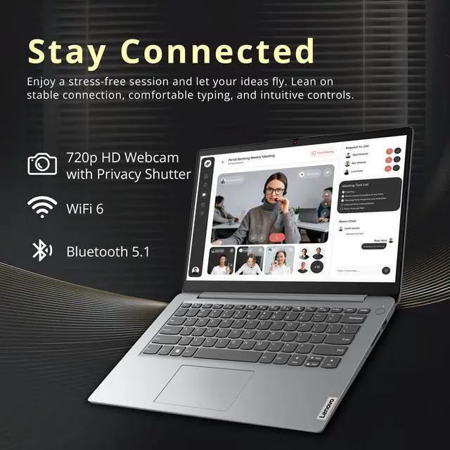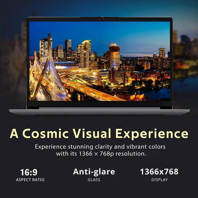 Lenovo Ideapad 1i 14" HD Laptop features the Intel Celeron N4500 processor, Intel UHD graphics, a webcam, Dolby Audio, and a 1-year Office 365 subscription for smooth daily productivity and entertainment.