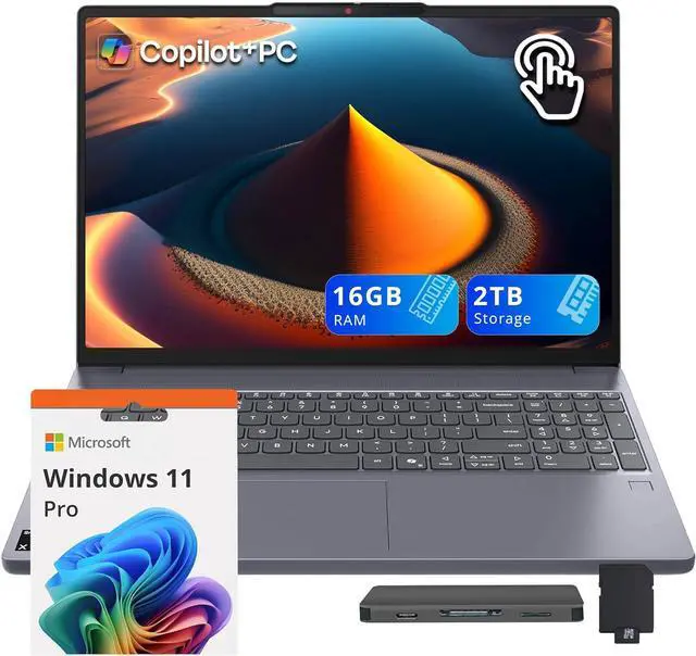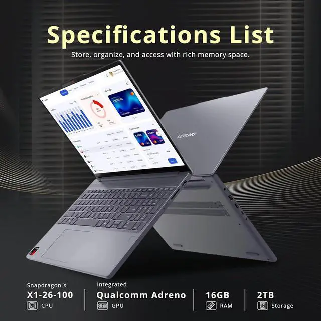 Lenovo IdeaPad Slim 3 15.3" WUXGA Touchscreen Laptop, Qualcomm Snapdragon X, 16GB RAM, 2TB Storage(1TB SSD+1TB Docking Station), Qualcomm Adreno, Backlit Keyboard, Fingerprint, Win 11 Pro, Grey