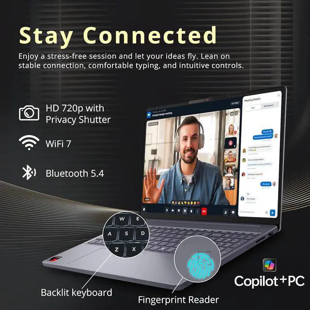 The Lenovo IdeaPad Slim 3 features a 15.3" WUXGA touchscreen powered by a Qualcomm Snapdragon X processor and Adreno graphics for smooth, efficient performance. With a backlit keyboard, fingerprint reader, and numeric keypad, its designed for secure, comfortable, and everyday productivity.