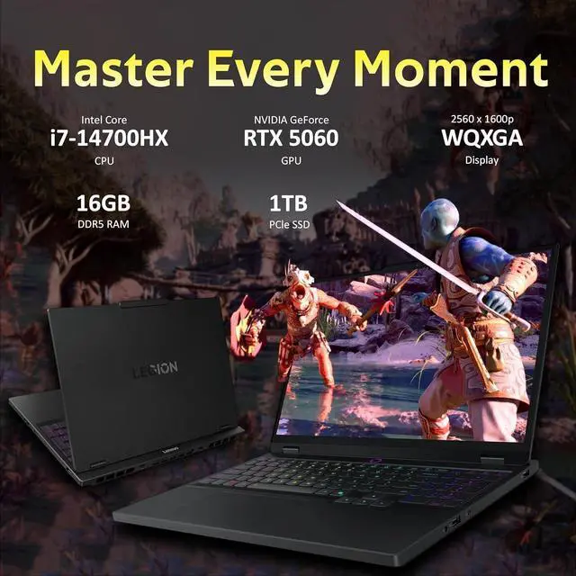 The Lenovo Legion 5 15.1" WQXGA 165Hz Gaming Laptop delivers exceptional gaming power driven by the Intel Core i7-14700HX processor and NVIDIA GeForce RTX 5060 graphics. Designed for serious gamers, it ensures lightning-fast performance, seamless multitasking, and stunningly smooth visuals even in demanding titles. Combined with its high-refresh WQXGA display, every frame comes to life with sharp detail and fluid motion for an immersive, competitive gaming experience.