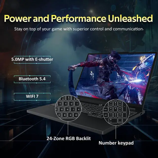 • Backlit Keyboard&Numeric Keypad: The 24-zone RGB backlit keyboard with numeric keypad ensures efficient work or play, even in low light.
