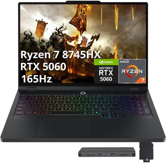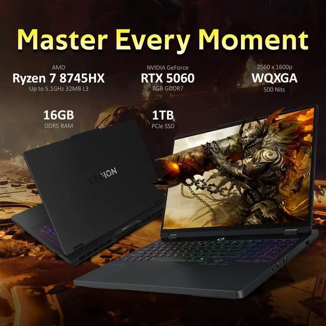 Lenovo Legion Pro 5 16" WQXGA 165Hz Gaming, AMD Ryzen 7 8745HX, 16GB RAM, 2TB Storage(1TB SSD+1TB Docking Station Set), GeForce RTX 5060, RGB Backlit Keyboard, Numeric Pad, Win 11 Pro, Black