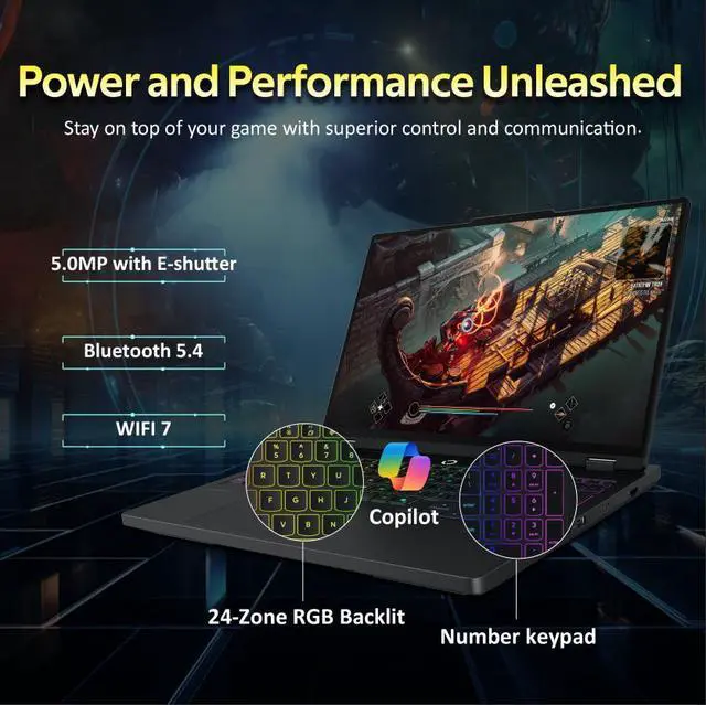 • 16" WQXGA 240Hz Display: Delivers silky-smooth visuals and sharp detail for competitive gaming and fast-action content.