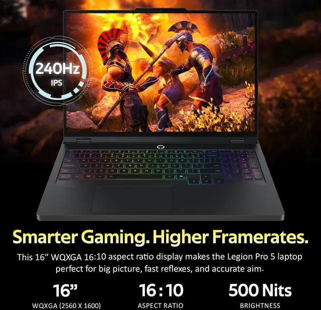 Lenovo Legion Pro 5i 16" WQXGA 240Hz Gaming Laptop packs an Intel Core i7-14650HX Processor and NVIDIA GeForce RTX 5060 Graphics for elite-level gaming performance. It features a blazing-fast 240Hz display, RGB backlit keyboard, and integrated numeric keypad.