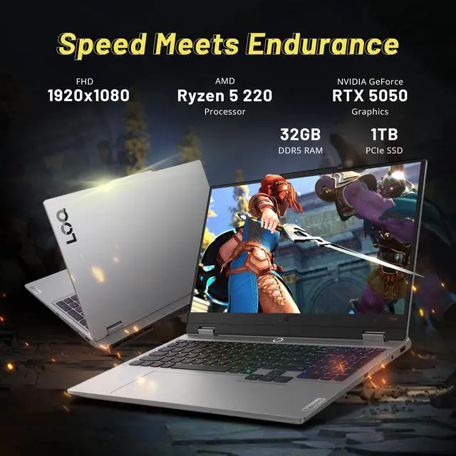 Lenovo LOQ 15.6" FHD 144Hz Gaming Laptop, AMD Ryzen 5 220, GeForce RTX 5050, 32GB DDR5, 2TB Storage (1TB SSD+1TB Docking Station Set), Backlit Keyboard, Numeric Pad, Win 11, Gray