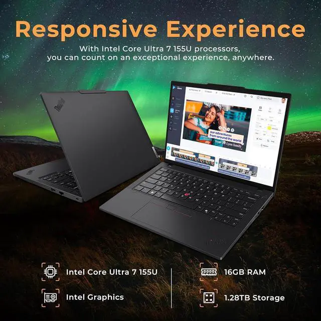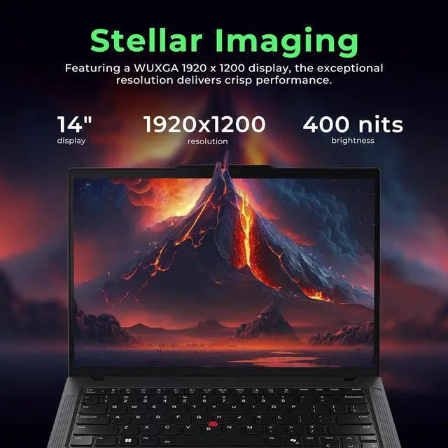 14" WUXGA (1920 x 1200) IPS DisplayThe business and leisure activities will undoubtedly benefit from the mesmerizing clarity and brilliance. ^^Intel Core Ultra 7 155U ProcessorExperience the perfect balance of performance and efficiency, elevating your digital encounters to new heights. ^^Backlit KeyboardEnjoy comfortable and accurate typing, even in dim light. Fingerprint ReaderEliminate password fatigue by replacing complex passwords with a simple and secure fingerprint scan. Intel Integrated GraphicsEnjoy solid image quality that brings your everyday content to life with vibrant colors and sharp details. ^^Windows 11 ProDimensions 31.59 x 22.37 x 1.77 cm, 1.31 kg.