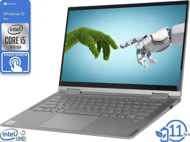 Increase productivity at work with this Lenovo Yoga notebook. The Intel UHD integrated graphics unit renders high-quality visuals on the 14-inch Full HD touch screen. This Lenovo Yoga notebook has an Intel Core i5 processor and DDR4 RAM, letting you run multiple programs simultaneously. The 1920 x 1080 resolution boasts impressive color and clarity.