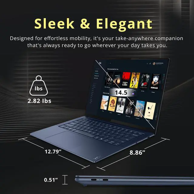The Lenovo Yoga Slim 7 14.5" 3K OLED Touchscreen Laptop is powered by the Snapdragon X Elite X1E-78-100 processor and Qualcomm Adreno Graphics, delivering next-generation performance and stunning visuals with the intelligence of Copilot.