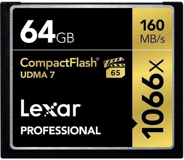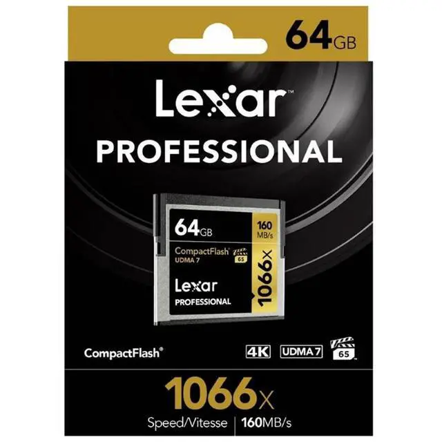 Designed to address the needs of professional photographers, videographers, and enthusiasts, the Lexar Professional 1066x Compact Flash card let you quickly capture high-quality images and 1080p Full-HD, 3D, and 4K video. This card leverages UDMA 7 technology to deliver a read transfer speed up to 1066x (160MB/s) (1). And youll power through post-production with high-speed card-to-computer file transfer (2). This dramatically accelerates workflow from start to finish, so you can save time and get back to the business of photography. Whats more, the 32GB-256GB capacities of the card support VPG-65.