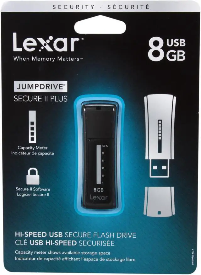 Loaded with advanced security features, Lexar JumpDrive Secure II Plus is a sleek USB flash drive that provides the ideal solution for safely storing, transferring, and sharing multimedia and more. It features the innovative and award-winning built-in capacity meter, along with advanced 256-bit AES encryption that protect your important documents, songs, photos and other files securely, knowing that the information is encrypted - even if the device is lost or stolen. These features have made the JumpDrive Secure II Plus desirable for on-the-go consumers, small business owners, traveling professionals, and anyone who wants reliable, safe, and convenient file storage and transfer capabilities.