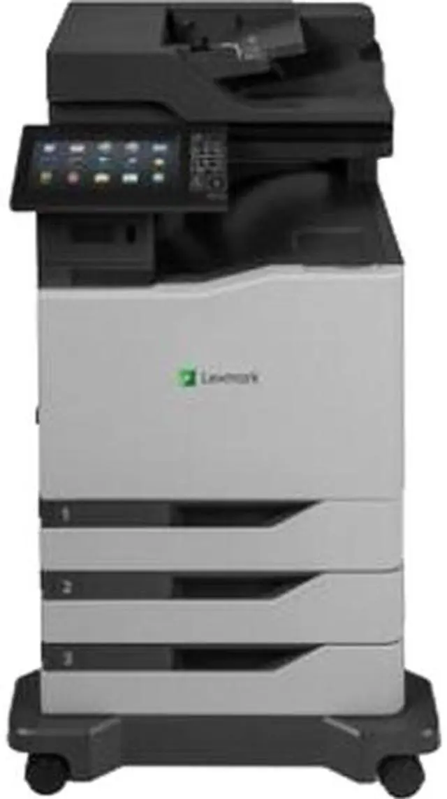 Fast print speed plus enhanced finishing supports high-volume production The Lexmark CX825dte color letter/A4 MFP combines print speed of up to 55 pages per minute, ease of use, professional color and standard input capacity of up to 1750 pages with available finishing options. Package Contents: CX825dte Colour Laser Multifunction Printer Hard Disk Up to 8,000*-page black toner cartridge Up to 17,000*-page cyan, magenta, yellow toner cartridges Up to 175,000** pages photoconductor and up to 300,000** pages developer unit Software and Documentation CD Power Cord(s) RJ-11 Phone cable (country dependent) Setup Guides (network and local attachment) Statement of limited warranty / guarantee Lexmark Cartridge Collection Program information Product Type: Laser Multifunction Printer Copier Type: Flatbed Duplex Printing: Automatic Media Size: Envelope No. 10 Media Size: B5 Envelope Media Size: Envelope No. 9 Media Size: A4 Media Size: B5 Media Size: A5 Media Size: Universal Media Size: C5 Envelope Media Size: A6 Media Size: DL Envelope Media Size: Executive Media Size: Letter Media Size: Legal Media Size: Oficio Media Size: Statement Media Size: Folio Multifunction Devices: Copier/Fax/Printer/Scanner Duty Cycle: 250000 Product Type: Laser Multifunction Printer Copier Type: Flatbed Duplex Printing: Automatic Manufacturer Part Number: 42K0041 Media Size: 4 x 6 Media Size: Envelope No. 10 - 4.80 x 9.50 Media Size: B5 Envelope - 6.92 x 9.84 Media Size: Envelope No. 9 - 3.80 x 8.80 Media Size: A4 - 8.30 x 11.70 Media Size: B5 - 6.90 x 9.80 Media Size: A5 - 5.80 x 8.30 Media Size: Universal Media Size: C5 Envelope - 3.37 x 9 Media Size: A6 - 4.10 x 5.80 Media Size: DL Envelope - 4.30 x 8.60 Media Size: Executive - 10.50 x 7.25 Media Size: Letter - 8.50 x 11 Media Size: Legal - 8.50 x 14 Media Size: Oficio Media Size: Statement - 8.50 x 5.50 Media Size: Folio - 8.27 x 13 Multifunction Devices: Copier/Fax/Printer/Scanner Power Source: AC Supply Duty Cycle: 250000 Recommended Use: Plain Paper Print Limited Warranty: 1 Year Weight (Approximate): 315 lb Form Factor: Floor Standing Scanner Type: Flatbed Form Factor: Floor Standing Manufacturer: Lexmark International, Inc Product Model: CX825dte Product Name: CX825dte Colour Laser Multifunction Printer With Hard Disk Scanner Type: Flatbed Screen Size: 10 Media Handling: 1 x Output Bin 300 Sheet Media Handling: 1 x Multipurpose Tray 100 Sheet Media Handling: 3 x Input Tray 550 Sheet Maximum Print Resolution: 1200 x 1200 dpi Brand Name: Lexmark Maximum Print Resolution: 1200 x 1200 dpi Brand Name: Lexmark Media Type: Polyester Label Media Type: Vinyl Label Media Type: Envelope Media Type: Plain Paper Media Type: Banner Paper Media Type: Card Stock Media Type: Label Media Type: Polyester Label Media Type: Vinyl Label Media Type: Envelope Media Type: Plain Paper Media Type: Banner Paper Media Type: Card Stock Media Type: Label Country of Origin: China Height: 36.7 Width: 22 Depth: 23.2 Environmentally Friendly: Yes Touchscreen: Yes Copy Color: Color Scan Color: Color Fax Color: Color Standard Input Media Capacity: 1750 sheets Ethernet Technology: Gigabit Ethernet USB: Yes Maximum Mono Print Speed (ppm): 55 Maximum Color Print Speed (ppm): 55 Wireless Print Technology: Apple AirPrint Print Color Capability: Color Energy Star: Yes Optical Resolution: 1200 dpi Environmentally Friendly: Yes Environmental Certification: Blue Angel Environmental Certification: EPEAT Environmental Certification: ENERGY STAR Touchscreen: Yes Copy Color: Color Scan Color: Color Fax Color: Color Standard Input Media Capacity: 1750 sheets Ethernet Technology: Gigabit Ethernet USB: Yes Maximum Mono Print Speed (ppm): 55 Maximum Color Print Speed (ppm): 55 Wireless Print Technology: Apple AirPrint Print Color Capability: Color Energy Star: Yes