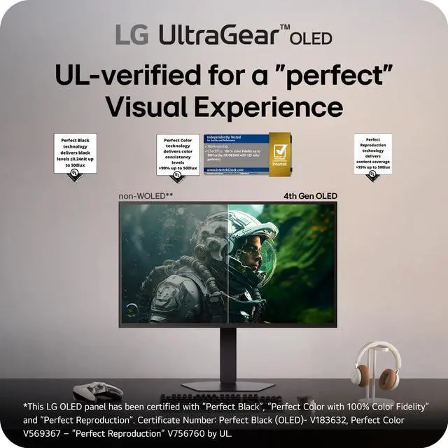 Powered by UltraGear’s latest OLED with Primary RGB Tandem tech, this is LG’s brightest OLED gaming monitor yet. Enhanced APL and reduced ABL keep critical visuals sharp during intense action, while UL Verified Perfect Black and DisplayHDR True Black 500 deliver deep contrast and pinpoint detail.