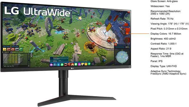 The stunning UltraWide Full HD resolution of 2560x1080 provides 33% more screen width than a standard FHD resolution display, offering a remarkable aspect ratio of 21:9. This incredible feature allows for easier multitasking, enabling you to switch between applications swiftly and enjoy an unobstructed view of your content.