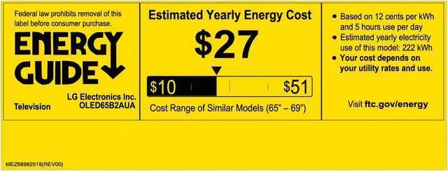 | Power Consumption | Standby Power Consumption: 0.4W Typical Power Consumption: 120 W Annual Power Consumption: 222 kWh/y |