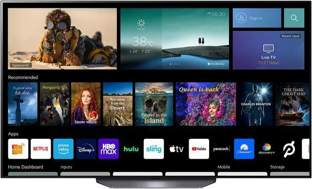 | Smart TV | Apple TV / Disney+ / HBO Max / Hulu / iHeartRadio / Netflix / Paramount+ / Peacock / Prime Video / Spotify / webOS / Youtube TV |