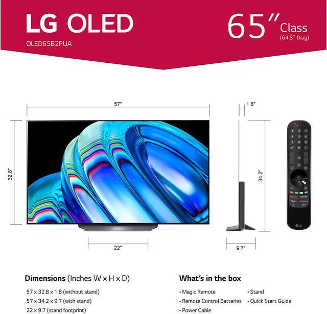 | Dimensions Without Stand (W x H x D) | 57.00" x 32.80" x 1.80" |