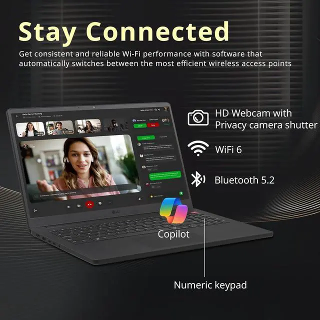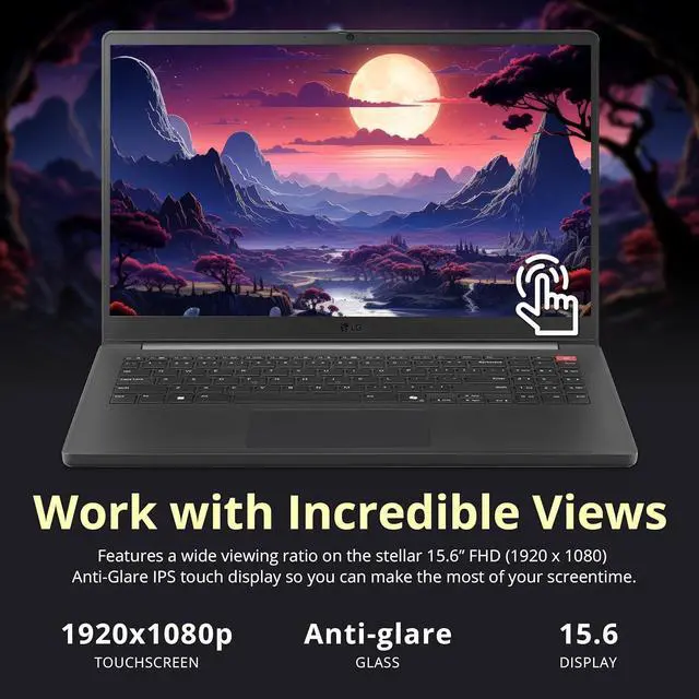 The LG Gram Book features a 15.6" FHD touchscreen for clear, intuitive interaction and is powered by an Intel Core Ultra 7 255U processor with Intel Graphics for smooth, efficient performance. With a built-in numeric keypad and Copilot AI support, its designed to enhance productivity and streamline everyday work in a sleek, lightweight design.