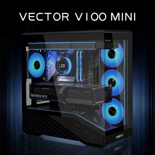 Lian Li VECTOR V100 MINI Micro Form Factor Compact PC Case, Panoramic Tempered Glass, Support Backet-Connect Micro-ATX, 415mm GPUs, 360mm Radiator, 9 x 120mm Fans, Dust Filiter, RGB - Black (V100MIX)