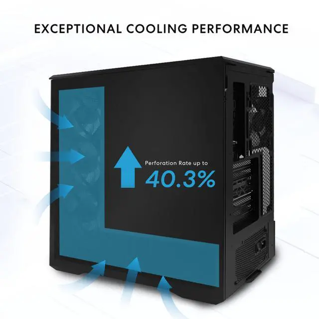 • Cooling Options: It supports multiple cooling configurations, accommodating up to 9X 120mm fans or a combination of fans and liquid cooling radiators.