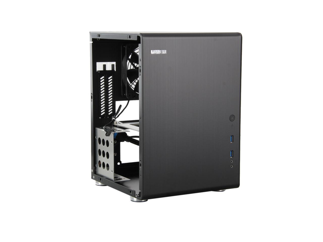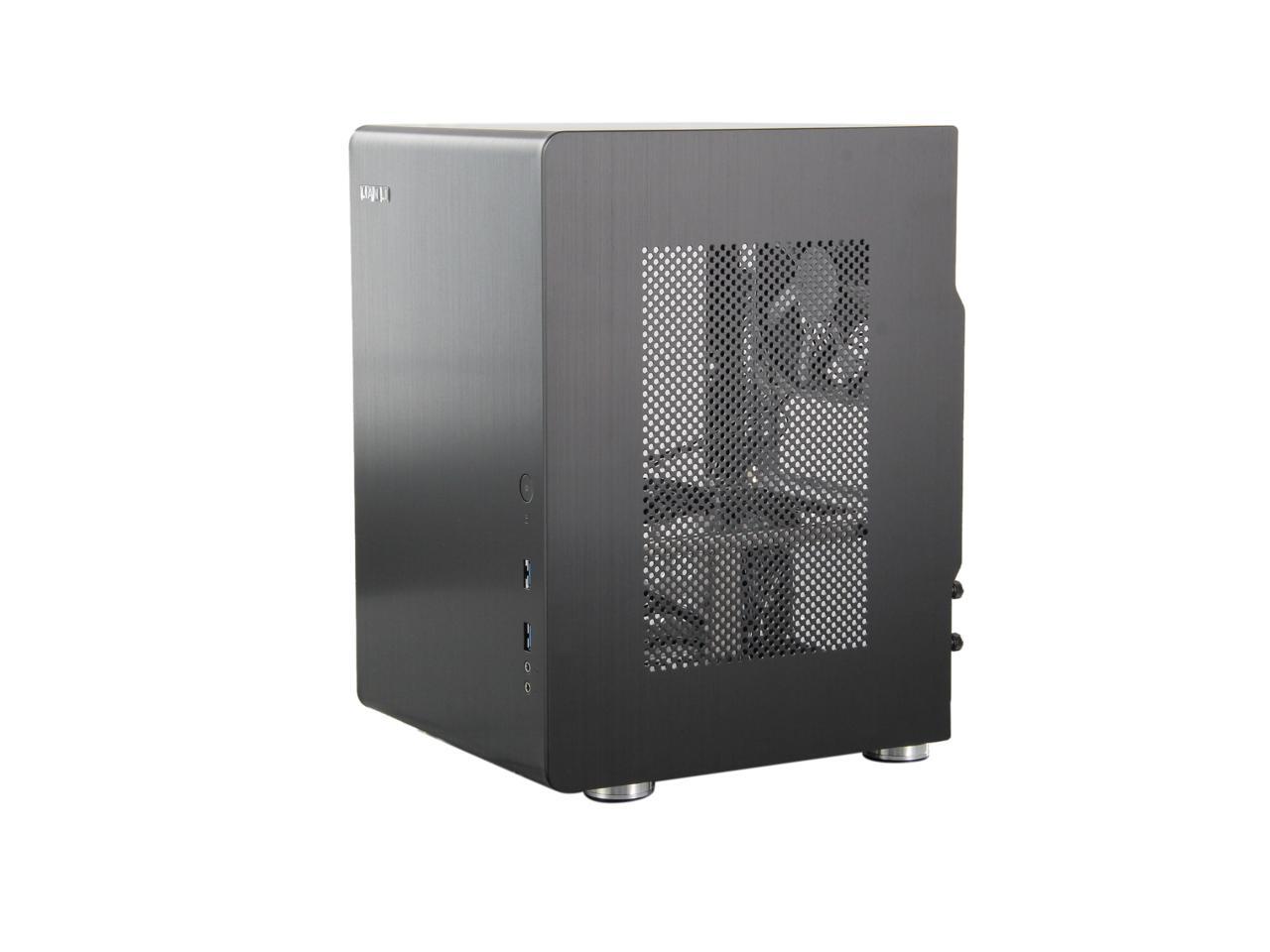 The small Lian Li PC-Q33 is crafted from durable aluminum material, and is accented with slick finish (available in Black and Silver). It seamlessly blends into any décor, and takes up very little space for a cleaner look and feel. The aluminum case feet with rubber padding firmly keep the case in place- no slipping.