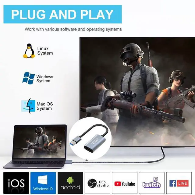 - Strong compatibility: This video capture card can be working on several Operating Systems and various devices: Windows, Mac OS, Linux, Android, Laptop, Nintendo Switch, TV BOX, HDTV etc