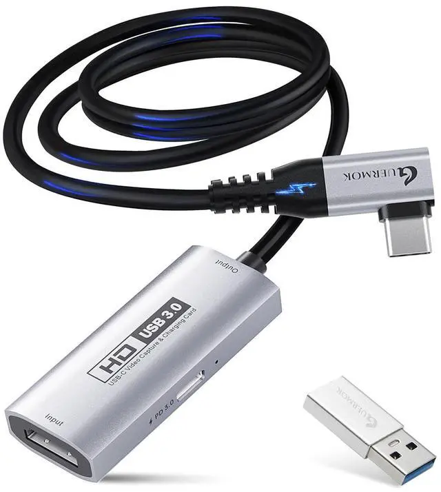 • [Package & Note] 1 x 3.3ft L-Shape HD Video Capture Card , 1 x USB 3.0 to USB C Adapter (A-side 3.0B-side 2.0), 1 x user manual. Note: If the device is recognized as USB 2.0, flip the capture card and reconnect it to use USB 3.0. Charging is only supported via USB-C ports with power delivery capabilities. A 100W charger is needed for optimal charging speed. Mild heating is normal