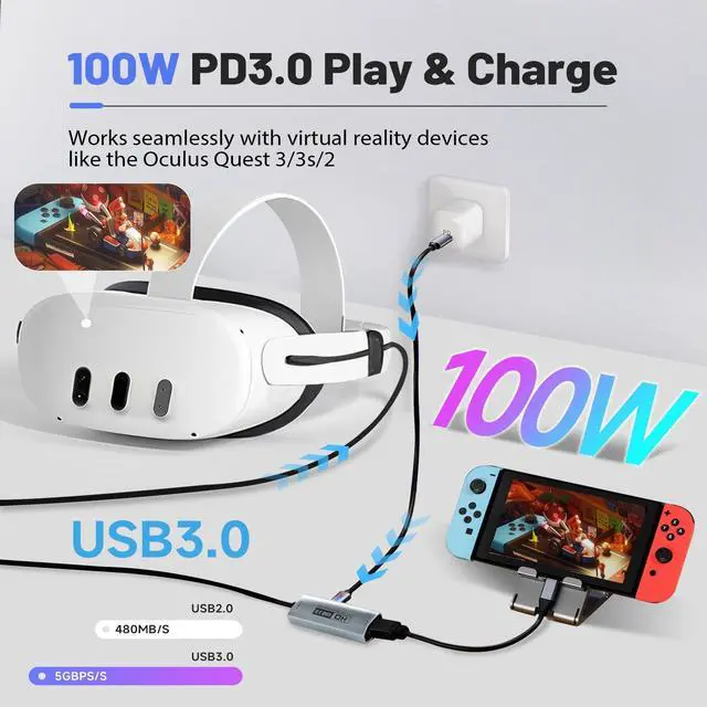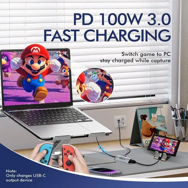 • [PD 100W Fast Charging]With PD 3.0 technology, this capture card provides up to 100W ultra-fast charging, keeping your Oculus or laptop powered during long gaming or streaming sessions. Intelligent power management ensures stable voltage even during intense VR gameplay or extended broadcasts