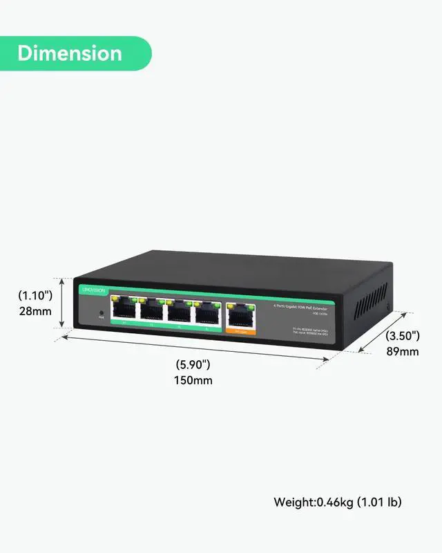 | LED Indicator | Yellow LED: POE Power Act Status ; Green LED: Ethernet Data Link Status; |