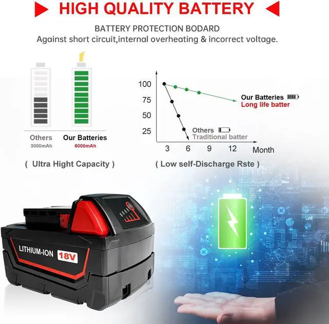 Package Include: 1*extended capacity 6000mah m18 18volts Replacement Battery.