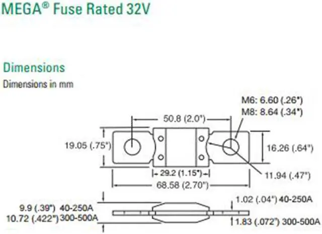 Littelfuse 0298175 Bolt Down Auto Fuse 175A Time Delay 32V 298 Series, MEGA