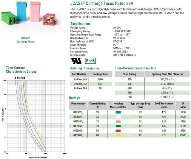Littelfuse 0495040 495 Square Car Fuse 40A JCASE Cartridge Fuses Rated 32V