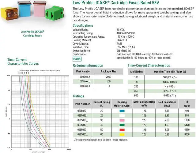 Littelfuse 0895030. Z 895 Square Car Fuse 30A Low Profile JCASE Cartridge Fuses Rated 58V