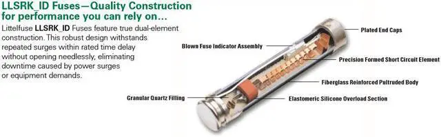Littelfuse LLSRK 40 ID ( LLSRK-40A ) Time Delay Dual Element Fuse 600V 40 Amp Description Available in both Indicating and Non-Indicating versions, the FLNR/FLSR series of fuses set the standard for general purpose fuses. The dual-element design provides advanced short circuit and overload protection. FLSR series fuses provide excellent protection for all types of circuits especially those containing motors. Applications • Service entrance switches • Transformers • Switchboard mains and feeders • Motor control central mains and motor branch circuits • All general purpose circuits Features/Benefits • Indication • Dual-element design • Available without indication • Current limiting