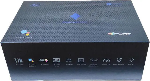 Plastic: Black Color, RGB Light for different statusI/O1*DC Power 5V/2A Input1*HDMI Up to 4K*2K UHD Output1*AV OUT 480i/576i standard definition output2*USB 1* USB 3.0, 1* USB 2.01 *RJ45 Ethernet Interface 10/100/1000 M1*Optical Optical Port for digital audio output1*TF CARD Support 4GB/8GB/16GB/32GB/64GBPower DC 5V/2ALED indicatorWorking/Blue, Standby/Red, WiFi/WhiteSoftwareOS Android 11.0V ideo &Picture AV1 MP-10@L 5.1 up to 4Kx2K@60fps VP9 Profile-2 up to 4Kx2K@60fps H. 265 HEVC MP-10@L 5.1 up to 4Kx2K@60fps AVS2-P2 Profile up to 4Kx2K@60fps H. 264 AVC HP@L 5.1 up to 4Kx2K@30fps MPEG-4 ASP@L5 up to 1080P@60fps (ISO-14496) WMV/VC-1 SP/MP/AP up to 1080P@60fps AVS-P16(AVS+) /AVS-P2 JiZhun Profile up to 1080P@60fps MPEG-2 MP/HL up to 1080P@60fps (ISO-13818) MPEG-1 MP/HL up to 1080P@60fps (ISO-11172) RealVideo 8/9/10 up to 1080P@60fps Multiple language and multiple format sub-title video support MJPEG and JPEG unlimited pixel resolution decoding (ISO/IEC-10918) Supports JPEG thumbnail, scaling, rotation and transition effects Supports *. mkv, *. wmv, *. mpg, *. mpeg,