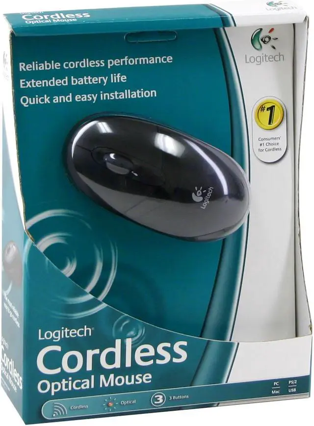 Free yourself from snagged and tangled mouse cords with the Logitech Cordless Optical Mouse. Setting it up is easy, just plug the receiver into your PC or Mac and you're ready to go. Its reliable wireless technology works within a long range so you're free to move about your desk. This mouse also features smooth, maintenance-free optical tracking, a convenient scroll wheel, and Logitech's proprietary power management technology for extended battery life. And it's all wrapped up in a sleek, comfortable design.